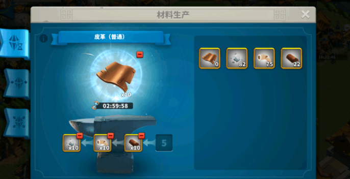 获得皮革,最基础的方法就是通过铁匠铺生产。咱们的铁匠铺可以持续生产各种装备材料,玩骑兵的话就专注生产皮革,玩步兵就生产铁矿石,玩弓兵就生产乌木。铁匠铺的材料生产千万别停,尤其是皮革这种骑兵必备资源,日积月累下来能攒不少。记得优先根据自己主玩的兵种来选择生产方向,这样才能最大化资源利用效率。