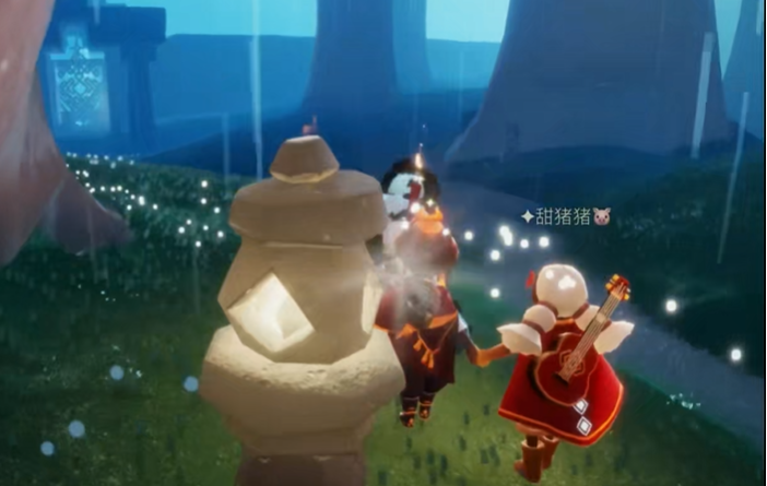 除了小鼓,旅人们还能在雨林解锁矮人面具,这是变身小矮人的关键道具。矮人面具由捉迷藏先祖提供,位置在雨林螃蟹洞附近。解锁该先祖需要两人合作推开大门,并完成躲猫猫任务链。兑换矮人面具需先解锁前置节点,总计消耗20颗爱心。搭配小鼓使用时,矮人形态能更方便地卡墙或躲避冥龙,特别适合在墓土等危险区域探索。