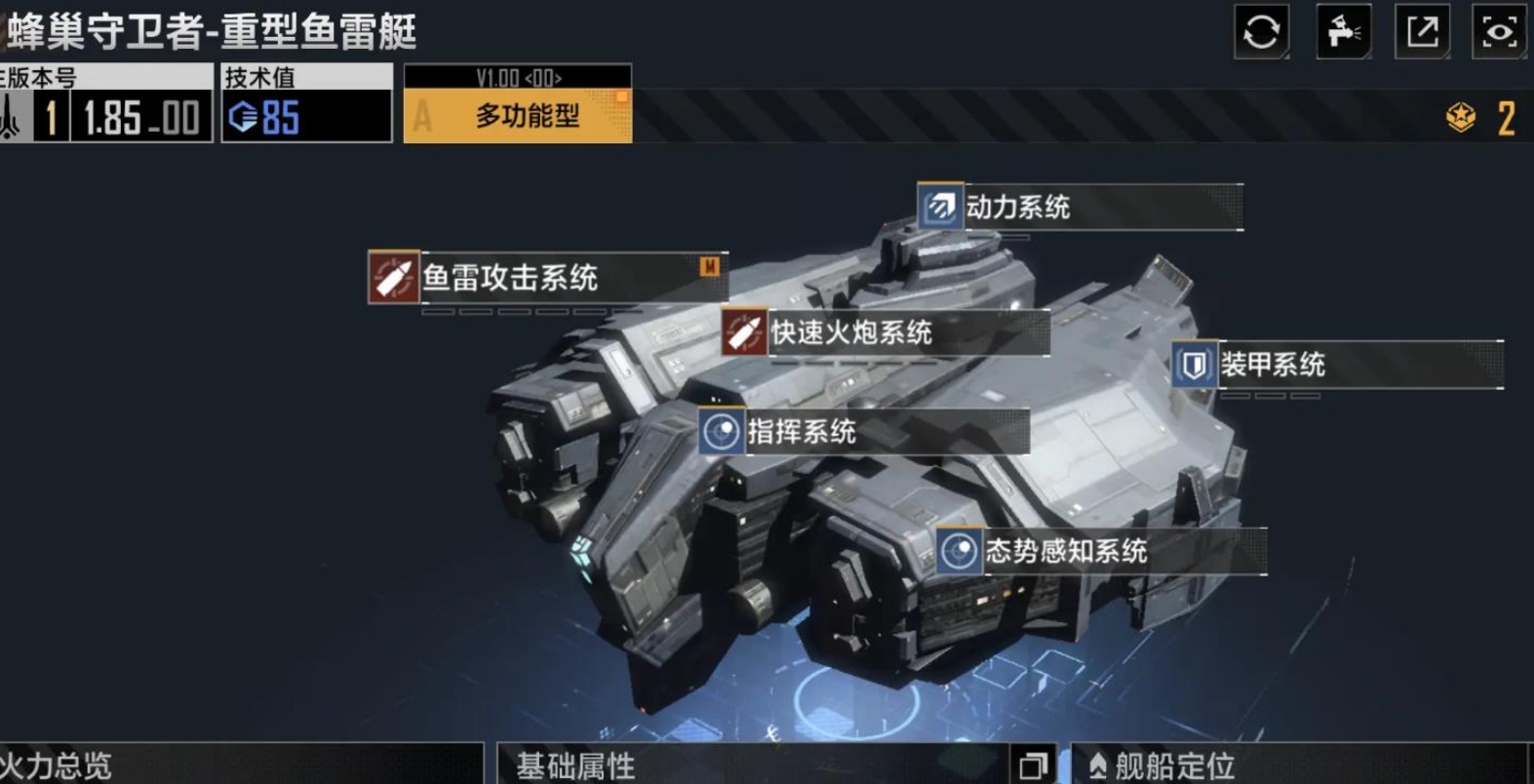 蜂巢守卫者作为护航艇中的核心输出单位,其主武器系统的高爆发伤害使其成为对抗巡洋舰与战列巡洋舰的利器。从技术值分配角度来看,优先强化主武器的冷却缩减与伤害提升是核心思路,具体加点顺序为两冷却、两伤害、一殉爆、一暴击伤害提高。装甲系统则建议全加血量以提升生存能力,动力系统中的目标选择时间降低可作为次要强化项,而副武器系统因缺乏对空专精特性,投入技术值的性价比极低。