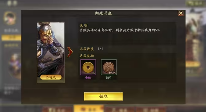 完成向死而生成就的关键在于控制兵力损耗,让战斗胜利时剩余兵力低于初始兵力的5%。这个成就需要精确计算兵力配置和出手顺序,最好找好友或同盟成员配合互刷。首先咱们需要准备两个武将,主将带1兵,副将带20兵,兵种适应性选C级以下。帮咱们完成任务的一方只需要带1个武将,兵种适应性B级即可,但速度必须比咱们快。这样对方能先出手秒掉咱们的副将,再由咱们的主将收掉对方残血单位,最终剩余1兵就能满足条件。