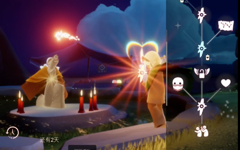 首先需前往魔法季地图,找到捶背先祖的具体位置。该先祖通常位于魔法季主区域的右侧平台,靠近一组石柱附近。与其互动后,需解锁前置动作节点,包括基础的捶背动作和部分装饰物品。解锁过程需消耗普通蜡烛,建议提前储备至少20根蜡烛以确保流程顺畅。完成前置节点后,兑换树末端的异域披风图标会亮起,需准备3颗爱心作为最终兑换材料。