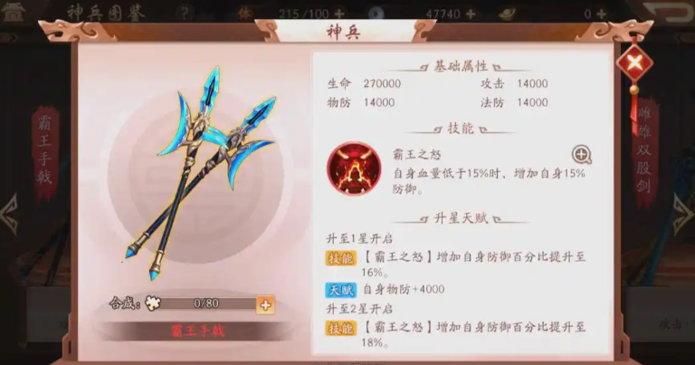 装备和神兵搭配直接影响金将的实战表现。根据武将定位选择攻击型或防御型装备,魏国控制流适合增强控制效果的神兵如闭月团扇,爆发型武将则优先选择攻击型神兵。神兵铸灵系统可进一步强化属性,激活木灵效果能显著提升攻击或防御能力。资源有限时应集中培养核心武将的神兵,丈八蛇矛或龙胆亮银枪等高星神兵能显著提升整体战力。