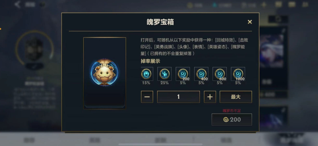 魄罗能量的主要来源是消耗魄罗币转化。在魄罗商城里,用魄罗币买魄罗宝箱最基础,每个宝箱固定给200能量,还有概率额外开出200到1000不等的能量,总概率大概20%。另一种更划算的方式是用400魄罗币购买已拥有的重复英雄姿态,系统会返还200币并给400能量,相当于用200币换了400能量,比例翻倍。不过这种方式需要先收集足够多的姿态,适合长期玩家。