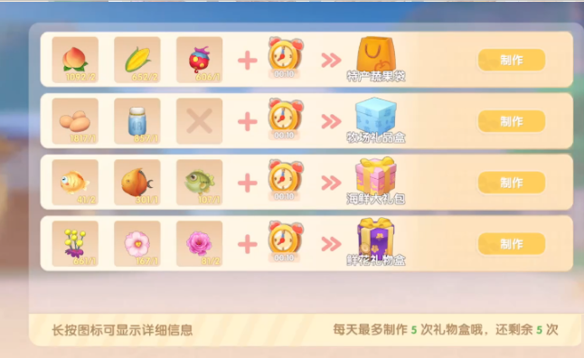 在琦琦那里你还可以包装不同种类的礼物盒,比如牧场礼品盒、特产蔬果袋、海鲜大礼包和鲜花礼物盒,这些都可以作为额外的方式赠送给居民,不同礼盒提供的亲密度加成也各不相同,合理利用这些资源能让你的感情培养之路更加顺畅。居民的好感度分为从陌生到知己五个不同阶段,每提升一个阶段你们的关系就当达到最高的知己级别时就能获得他们为你准备的特殊道具奖励了。对于像梅森、丝尔特这样的商人居民,你还可以通过购买他们商店的物品来增加亲密度,这种方式简单易行,能让你在日常游戏中不知不觉就拉近了和他们的距离。