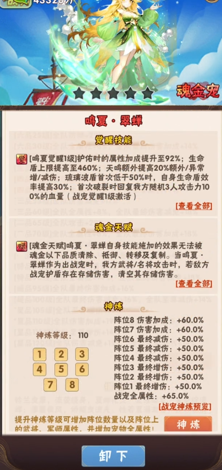 战宠升级主要靠喂战宠口粮,这能提升战宠的基础属性,比如攻击和血量,基础属性高了,它技能的伤害或治疗量自然也就跟着上去了。升星则需要消耗同一种战宠的碎片和一种叫升星丹的道具,升星可以大幅提高战宠的基础属性和技能释放的几率,让它变得更强力。至于神炼,这个系统更高级一些,它除了能给战宠自身按百分比提升全属性外,最主要的用途是给阵位上的武将提供额外的属性加成,比如给前排加生命,或者给后排加攻击。