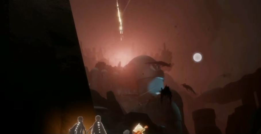 伊甸暴风眼区域充满危险挑战,玩家需要面对飞行的龙和频繁落下的石头。龙会发射红光锁定目标,一旦被击中可能损失光翼;石头则从高处掉落,造成瞬间伤害。这里的环境昏暗且动态变化,玩家必须保持高度警觉,专注于移动和观察,避免被这些障碍物击中。