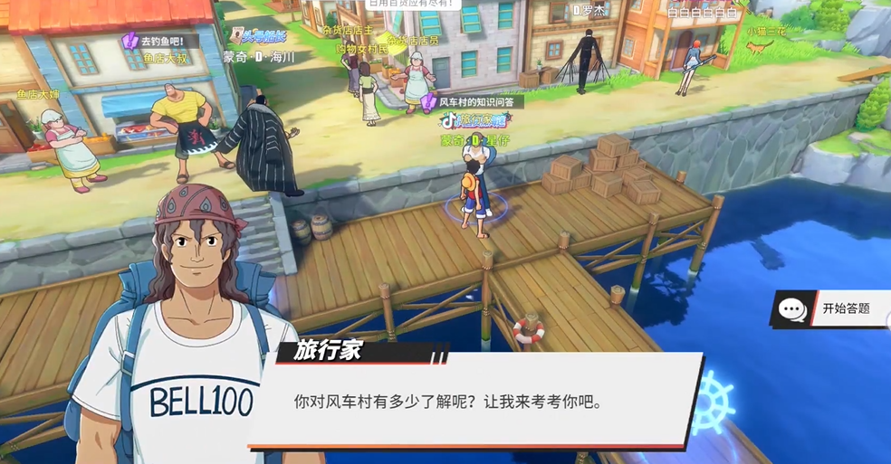 第一个任务通常是在风车村的码头那儿,你会碰到一个旅行家,他会问你几个关于风车村的小知识,问题基本都绕不开村里的人和事,比如酒馆的老板娘叫啥名字、以前哪个大海盗在这儿待过、附近海里最厉害的家伙是谁这些,你按照知道的选对答案就行。接着是帮鱼店大婶和鱼店大叔的忙,大婶会跟你抱怨船坏了出不了海,你得去帮她找修船的木头,那棵能砍的树通常藏在菜地或者大风车旁边不太起眼的地方,找到砍了拿回去交差,大叔还会跟你唠唠钓鱼和当年海盗的往事。然后就是去村里的酒馆,老板娘卷乃那儿事儿也不少,你得在她那儿买点喝的,喝几次后会碰上不讲理想闹事的客人,把他们赶跑后,卷乃为了谢你,会让你去酒馆后面的仓库里自己挑点奖励。