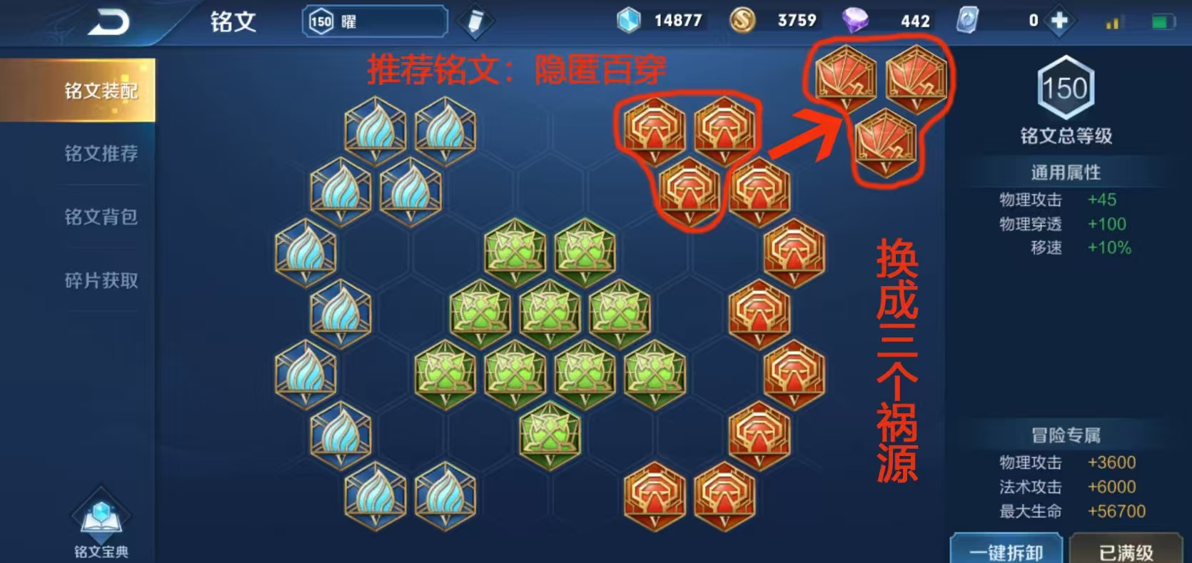 曜通常推荐使用百穿铭文组合,即红色异变、绿色鹰眼和蓝色隐匿,这套铭文提供高额的物理攻击、物理穿透和移动速度加成,让曜在前期就能拥有强大的压制力,物理穿透确保他能有效打击敌方英雄,尤其是脆皮目标,而移动速度提升则增强了游走和支援的效率,如果对局中控制较多或需要更多生存能力,可以将部分铭文替换为狩猎或调和,以增加攻速或生命回复,但百穿铭文是最通用和主流的选择,它帮助曜在未合成穿透装备前就能对后排造成威胁,同时移速加成让打野节奏更流畅。