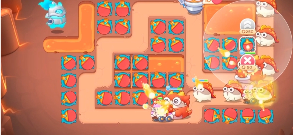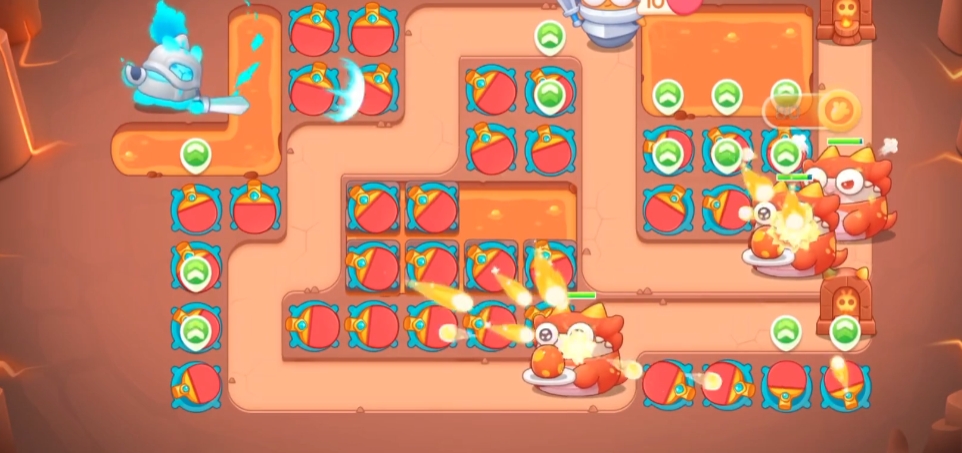 游戏初始阶段会提供基础引导,玩家需要先熟悉章节特有的火山喷发机制和幽灵剑士NPC的激活方式。部分高难度关卡如第40关逐鹿龙族要求玩家在左右两侧同步部署防御,而第60关则引入了龙蛋BOSS的阶段性攻击模式。金币获取效率直接影响炮塔建设速度,建议优先击破钱袋道具,并通过每日任务、广告奖励等途径积累资源。