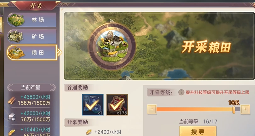 粮草是维持士气的唯一资源,前期需要优先开采高级粮田来保证储备。每次行军或战斗都会消耗1点士气,长距离移动还会因士气衰减影响战斗力。建议在攻打城池前将部队调至附近兵营待命,用粮草补满士气再行动。攻城时打守军需要士气,但拆城墙耐久则不需要,可以安排低战队伍专门负责拆迁。