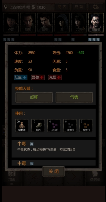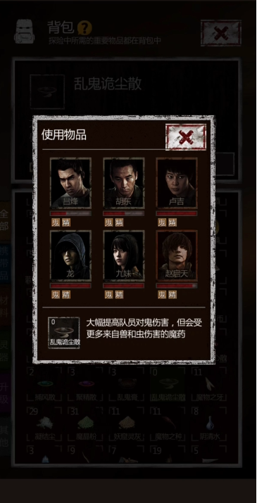 推荐用吕队长、卢吉、九妹、赵启天、胡司令、龙和风四爷的组合,卢吉的被动回血能省不少资源。神器根据怪物类型更换,1-5层带律鬼镜、钟馗镜、五岳镜对付鬼怪,5-10层换白虎镜、饕餮镜打野兽,10-15层用朱雀镜、肥遗镜针对毒虫。