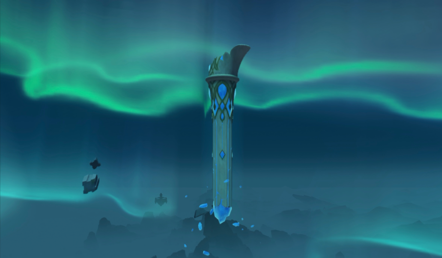 到达山顶后会发现碎片已经移动到山顶中央,需要再次用深赤之石buff攻击它们。这次每块碎片只需攻击一次,但红石位置比较分散,建议带上弓箭角色远程操作。解冻完成后,寒天之钉会升起,这时候可以解锁山顶的圣遗物副本。如果想继续探索,可以借助风场或元素方碑爬到寒天之钉顶端,还能解锁隐藏成就。