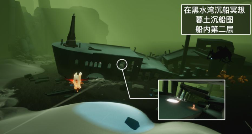 黑水港湾的沉船是另一个与船相关的任务点,位于暮土地图的港口区域。进入黑水港湾后,小伙伴们需要小心躲避冥龙,向前飞行穿过空气墙就能看到沉船。沉船内部有冥想点,完成任务后能获得额外奖励。如果第一次没找到,可以多尝试几次,熟悉路线后会更轻松。