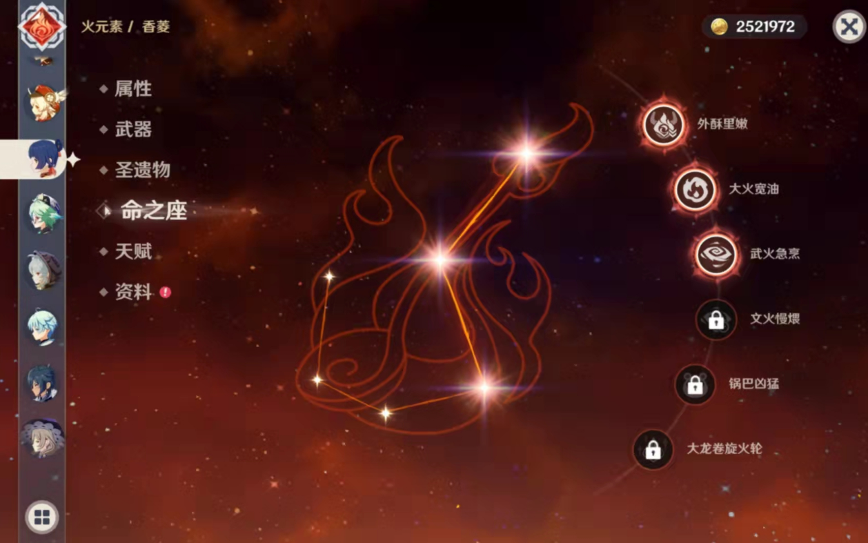 香菱的命之座虽然能带来不错的提升,但并不是所有层都必须要点亮。比如第四层文火慢煨可以延长旋火轮的持续时间,而第六层大龙卷旋火轮能为全队提供火元素伤害加成。可以根据自己的队伍搭配和战斗需求,优先点亮那些最实用的命之座。