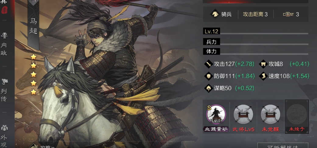 武将的基础属性成长主要通过升级实现。每次升级都会提升武将的六 10-16