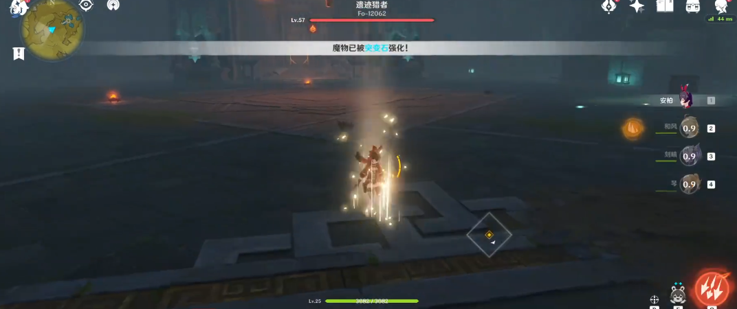靖世九柱任务中玩家需要面对三波不同类型的敌人,包括遗迹守卫、幼岩龙蜥和遗迹猎者。这些敌人会根据世界等级调整强度,建议队伍等级提升至当前上限后再挑战。第一波为单个遗迹守卫,其攻击模式以近战挥击和远程导弹为主,血量降低后会受突变石强化,需优先破坏突变石解除增益。突变石可通过岩元素、雷元素或大剑攻击快速击碎,破坏后敌人将失去火元素附魔和攻速加成。