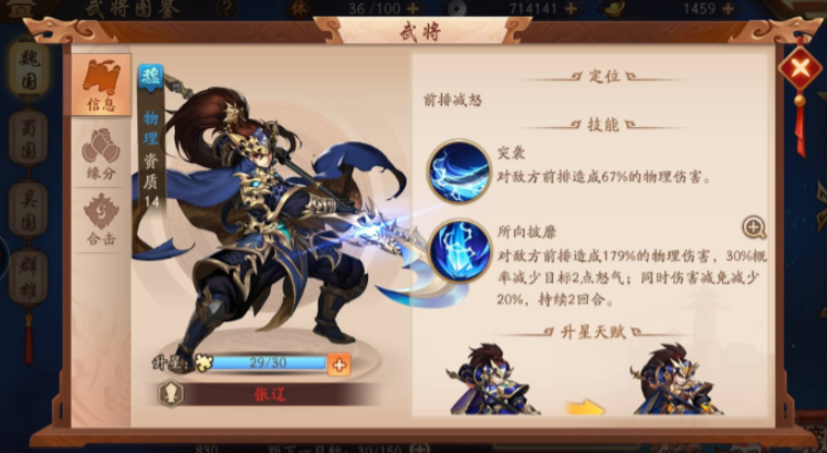 魏国阵容以控制与爆发兼备著称,核心武将夏侯惇凭借高暴击、命中及额外伤害机制成为必选主力,配合许褚的无视防御特性可快速突破敌方前排。张辽的减怒效果能有效打乱对手节奏,甄姬的群体治疗则为团队提供持续作战能力,这套基础组合兼顾PVE与PVP场景,适合大多数玩家优先培养。