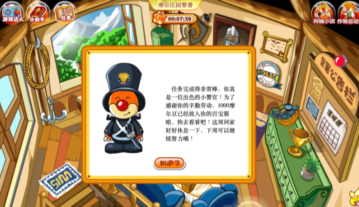 摩尔庄园警署怎么获得考勤卡