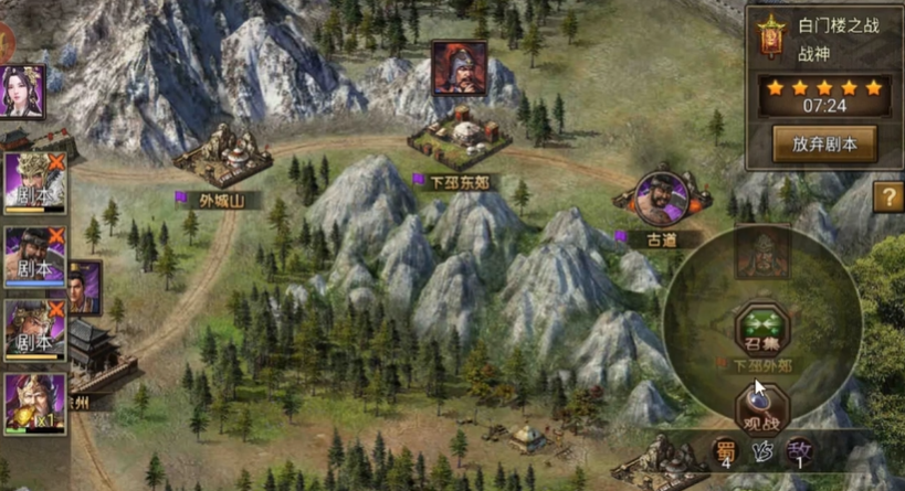 战神模式新增的两个事件是破局关键。下邳事件能将白门楼精英NPC引至下邳,而广陵北事件可断桥阻挡曹操军增援。战术上需优先突进古道并刷影子控制下邳东郊,同时分派武将处理徐州事件。外城山补血后,派一武将进入徐州刷双影,再拉其他武将单挑;郯城方向则需同步突进并刷三影形成夹击。若突进受阻,可通过增刷影子弥补兵力缺口。