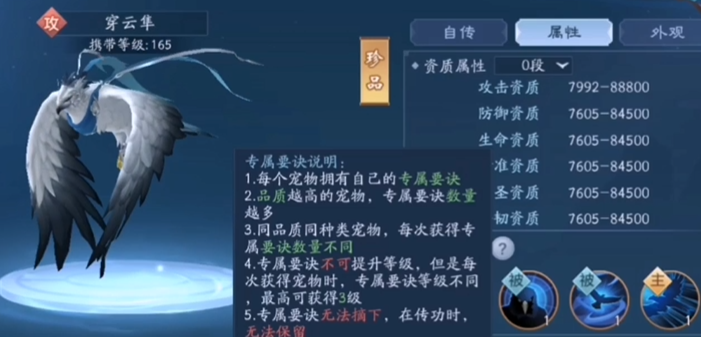 宠物可是咱们闯荡江湖的好帮手,不仅能陪咱们打怪升级,还能在关键时刻给咱们加血、加防御,甚至帮忙控制敌人。宠物的选择可不是随便抓一只就完事了,得根据咱们的职业、战斗风格来搭配。宠物分为攻击型、防御型、治疗型和辅助型,品质也从凡品到极品不等,品质越高,宠物的成长潜力和技能数量就越多。咱们得先搞清楚自己需要什么样的宠物,再决定怎么培养。