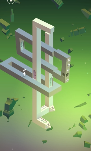后续阶段需返回初始绿色场景并重新调整路径走向,竖立道路后进入横条通道时需要反复旋转平台形成连续通路,此过程需保持对建筑结构的整体观察,避免因局部视角误导而遗漏关键连接点。当角色进入中层传送门后,需通过三次以上的路径旋转将分散的阶梯模块重组为完整通路,最终抵达顶部触发终末机关,该环节考验玩家对三维空间动态变化的预判能力。
