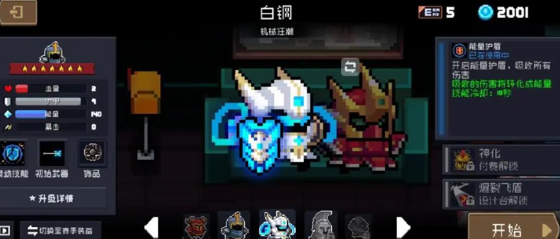 元气骑士新手优先升级崭新的手枪、霰弹枪M3、卫星浮游炮、法典、晶蟹太刀,这几把武器综合性价比、泛用性与操作门槛最适合新手发育与通关。
